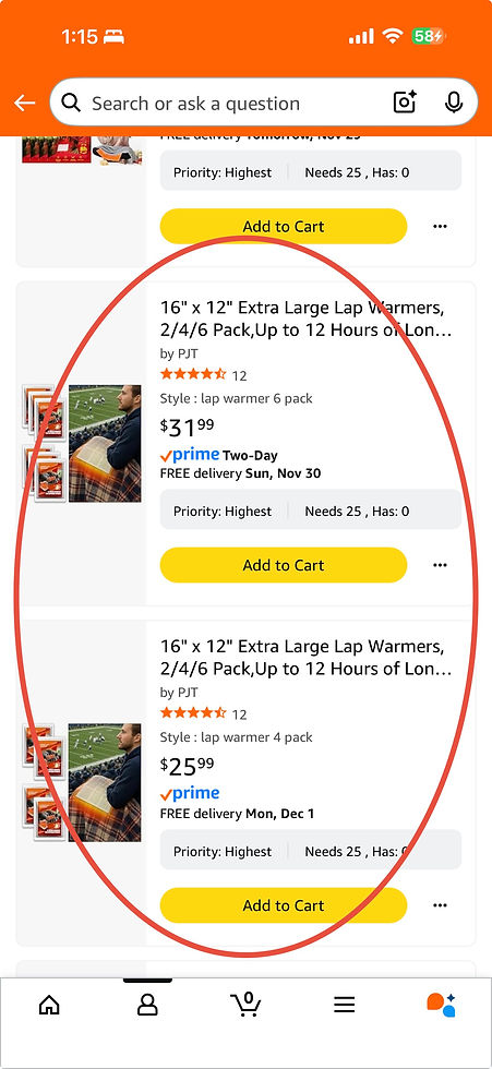 These are the lap/body warmers we have on the list. We do have the option turned on that you can purchase things not on our list and send those instead if you find a less expensive option.
